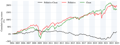 The figure below shows extended returns to the Pollutive-minus-Clean portfolio from my paper on Carbon Beta. See the paper for further details.